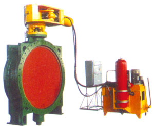 該蝶閥開啟、關(guān)閉均靠液壓驅(qū)動(dòng),可在 90 °范圍內(nèi)調(diào)節(jié)蝶板快、慢兩階段關(guān)閉角度,可立臥兩式安裝。